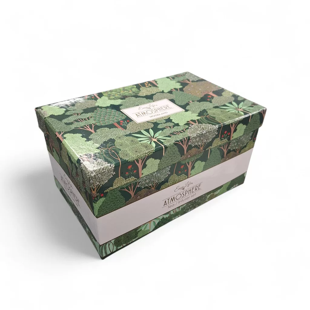 Finom zöld tónusok, erdei motívumok és elegáns aranyszínű vonalak – letisztult, mégis karakteres megjelenés, ami feldobja a teázás pillanatait.