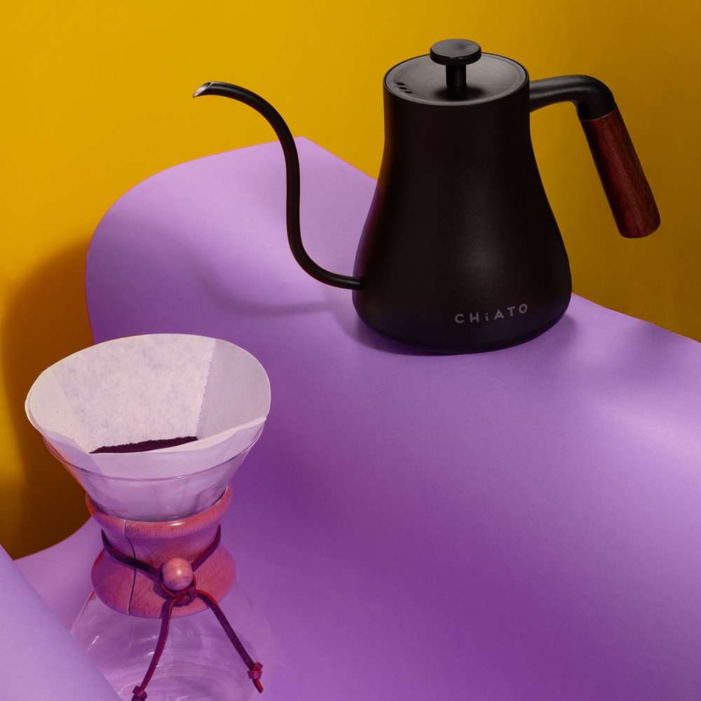 A különböző Pour Over filterkávé készítéséhez elengedhetetlen egy hattyúnyakú kiöntő, amellyel pontosan kontrollálható az öntés sebessége és annak egyenletessége. A másik fontos tényező a vízhőmérséklet. A Chiato FlowPlay egy remek ár-érték arányú elektromos hattyúnyakú kiöntő, amellyel magasabb szintre viheted az otthoni filterkávé készítés művészetét.