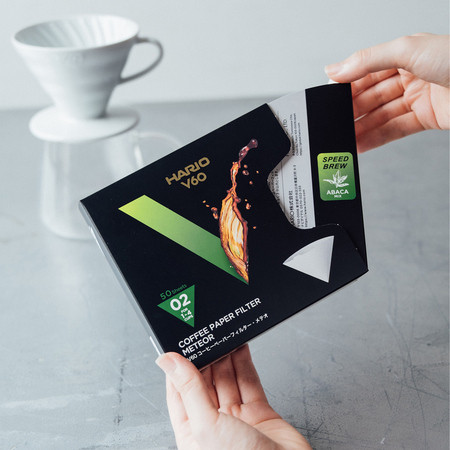 - Kb. 3× gyorsabb átfolyás – a Hario belső tesztjei szerint a Meteor papír jelentősen gyorsabban engedi át a vizet, mint a klasszikus V60 filterek, így:
