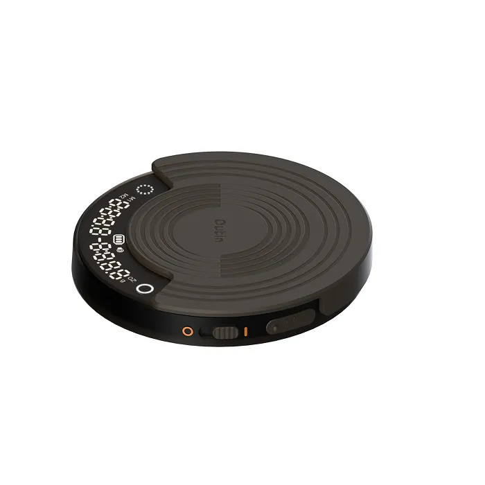 Az OutIn Claro mérleg modern, kerek formája egyszerre kompakt és praktikus, ideális választás otthoni vagy utazás közbeni kávékészítéshez. Akár egy kézzel is könnyedén használható – és a hozzá járó vízálló, karcálló tok extra védelmet nyújt útközben is.