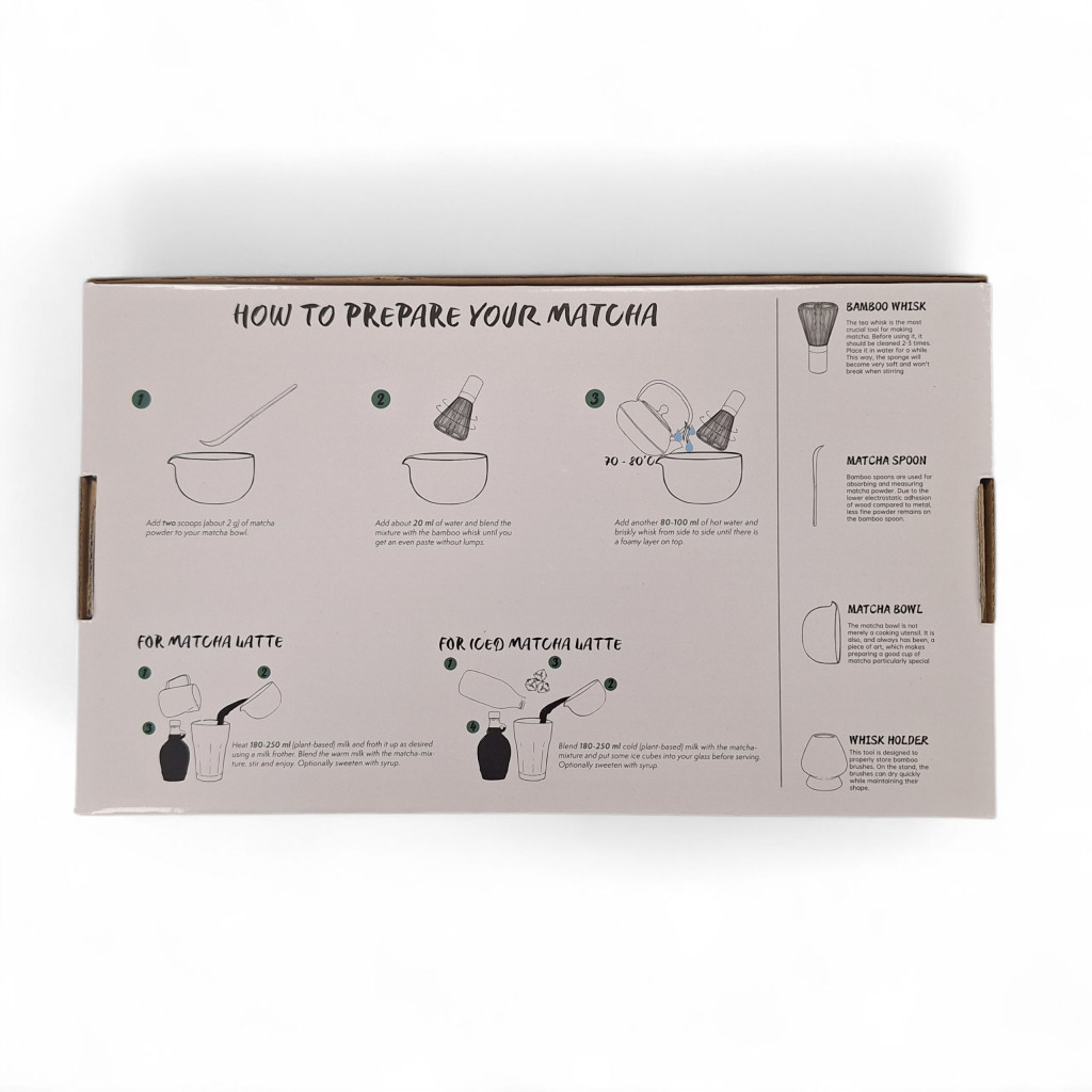 Ez a szett mindent tartalmaz, amire szükséged van a matcha tea élvezetéhez, és tökéletes ajándék lehet barátoknak vagy családtagoknak, hiszen elegáns dobozban érkezik.