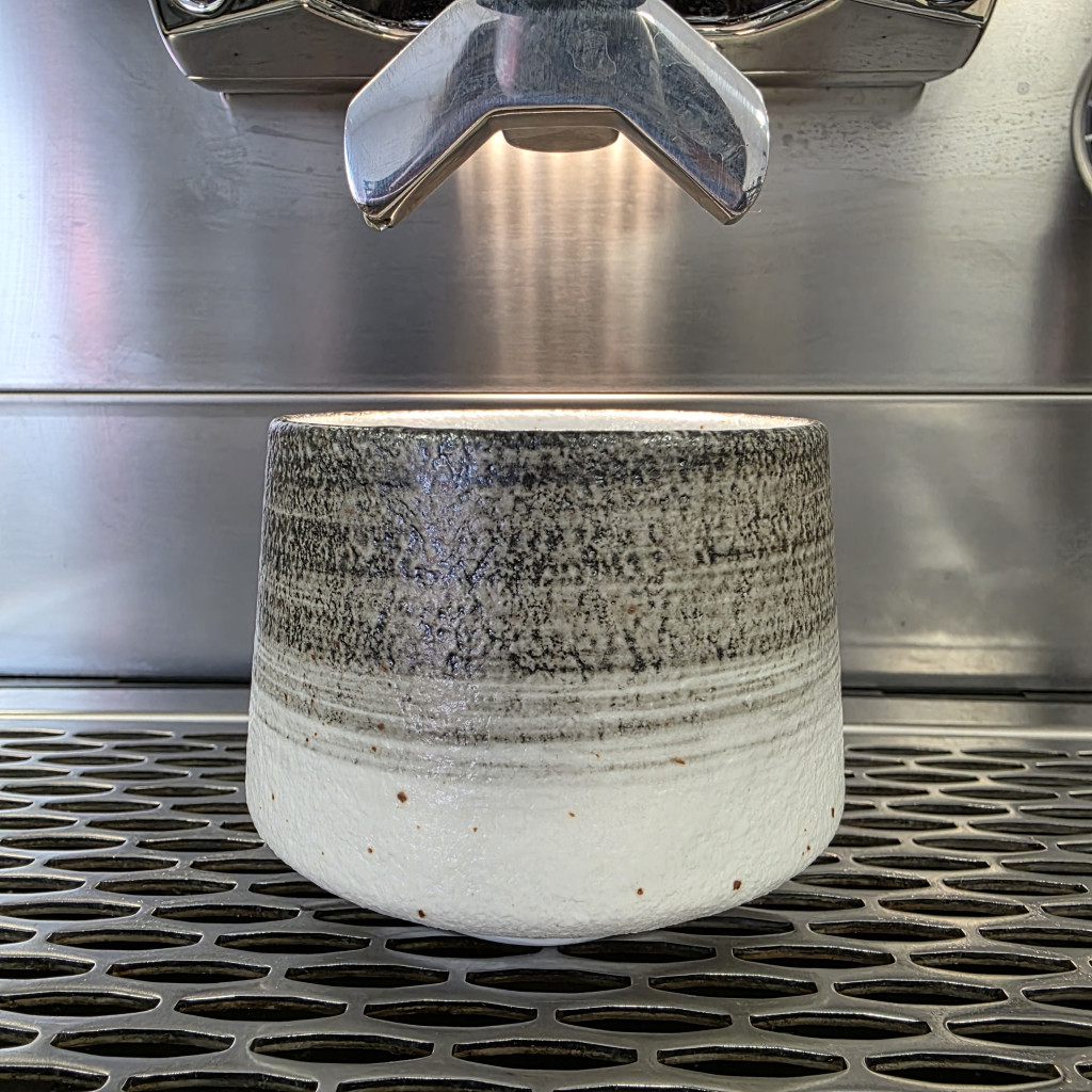 Ez a modern, szürke-fehér porcelán csésze első pillantásra olyan, mintha kőedényből készült volna, mégis könnyed porcelán anyaga adja finom eleganciáját. 190 ml-es űrtartalmával ideális választás cappuchinohoz, cortadohoz vagy teához.