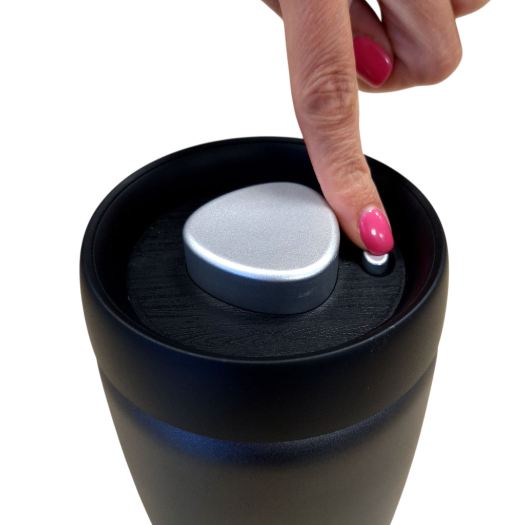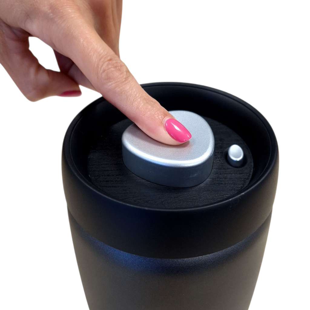 A tetején található praktikus pumpagombbal egyszerűen vákuumot hozhatsz létre, amely kiszorítja a levegőt a tartályból, így a kávébabok lassabban veszítenek frissességükből. A légmentesítő gomb segítségével pedig egy mozdulattal kiengedheted a levegőt, amikor újra szeretnéd használni a kávét.